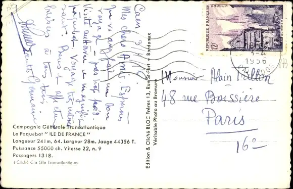 Zustand, siehe Scan, gelaufen, 1956 - ca 14 cm X 9 cm