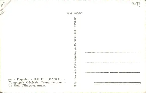 Ak Passagierschiff Ile de France, CGT, Innenansicht