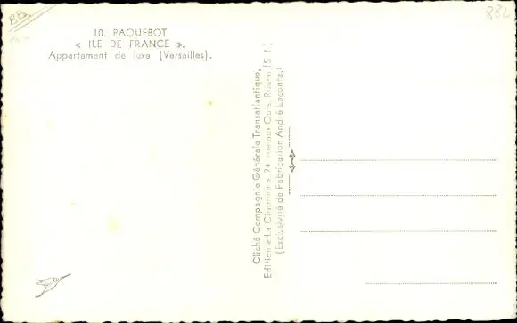 Ak Passagierschiff Ile de France, CGT, Luxus-Appartement Versailles