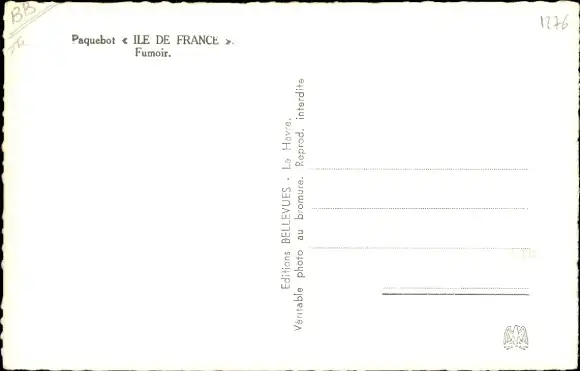 Ak Passagierschiff Ile de France, CGT, Rauchsalon
