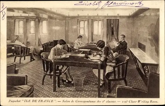 Ak Passagierschiff Ile de France, CGT, Schreibzimmer der 2. Klasse