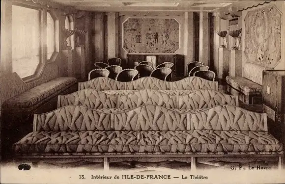 Ak Passagierschiff Ile de France, CGT, Theater, Zuschauerraum
