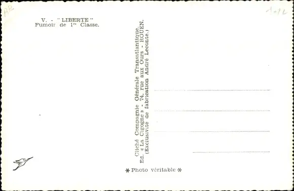 Ak Passagierschiff Liberté, CGT, Rauchsalon 1. Klasse