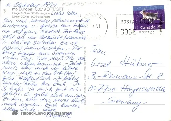 Zustand, siehe Scan, gelaufen, 1991 - ca 15 cm X 11 cm