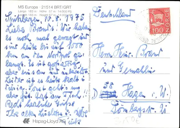 Ak Passagierschiff MS Europa, Hapag-Lloyd