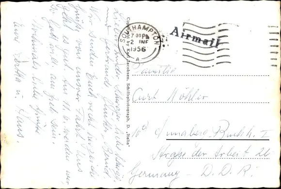 Zustand, siehe Scan, gelaufen, 1956 - ca 15 cm X 10 cm