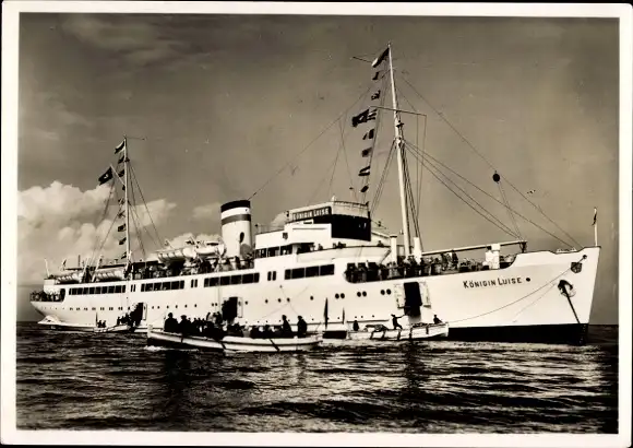 Ak Passagierschiff MS Königin Luise, HAPAG Seebäderdampfer, Ausbooten der Passagiere