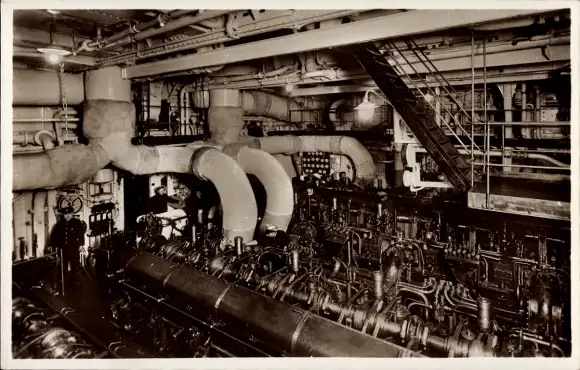 Ak Passagierschiff MS Monte Cervantes, HSDG, Maschinenraum, Innenansicht
