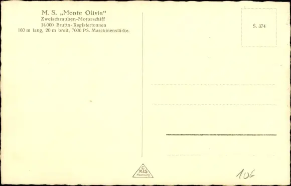 Ansichtskarte,Postkarte,HSDG,Hamburg, Südamerikanische, Dampfschifffahrts, Gesellschaft