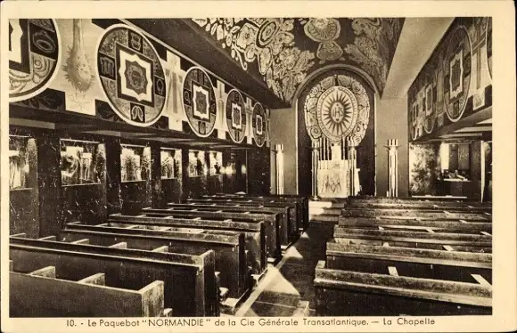 Ak Passagierschiff Normandie, CGT, Kapelle