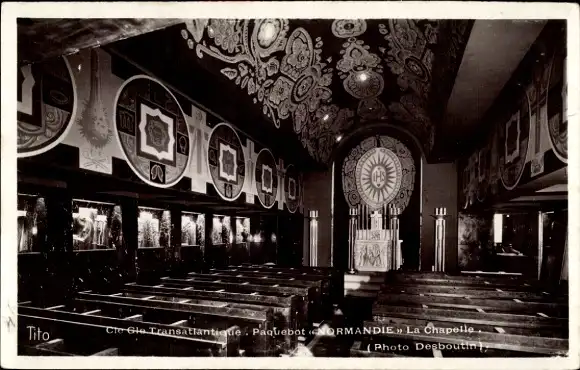 Ak Passagierschiff Normandie, CGT, Kapelle