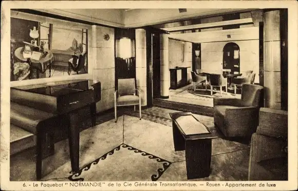 Ak Passagierschiff Normandie, CGT, Luxus-Appartement Rouen