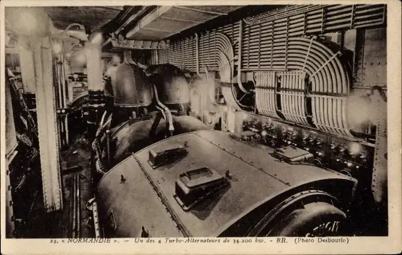 Ak Passagierschiff Normandie, CGT, Maschinenraum