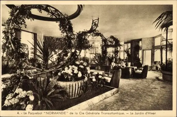Ak Passagierschiff Normandie, CGT, Wintergarten