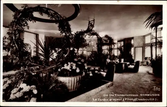 Ak Passagierschiff Normandie, CGT, Wintergarten