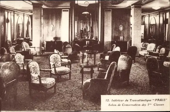 Ak Passagierschiff Paris, CGT, Konversationssaal der 1. Klasse