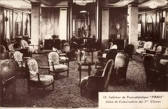 Ak Passagierschiff Paris, CGT, Konversationssaal der 1. Klasse