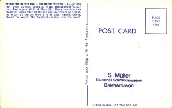 Ak Passagierschiff President Cleveland, President Wilson, American President Line