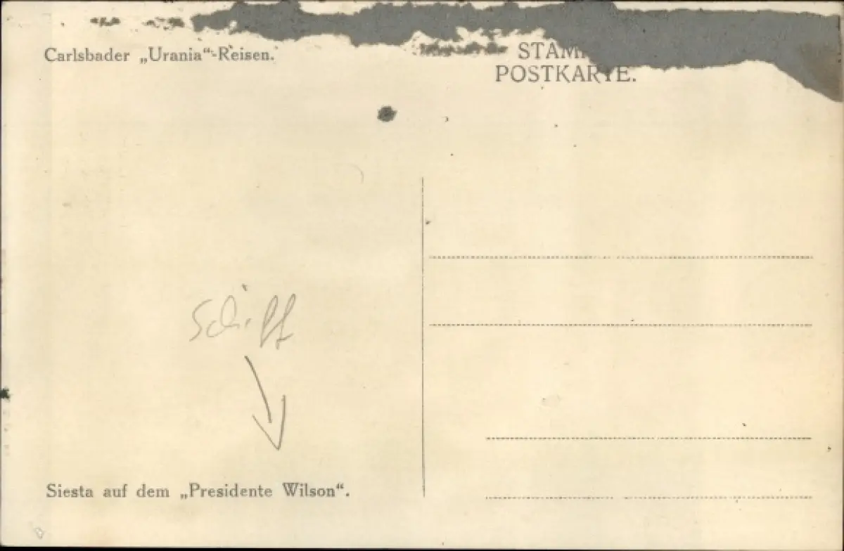 Ak Passagierschiff Presidente Wilson, President Line, Carlsbader Urania Reisen, Passagiere an Deck