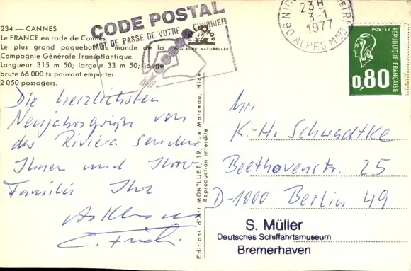 Zustand, siehe Scan, gelaufen, 1977 - ca 14 cm X 9 cm