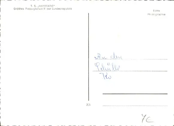 Ak Passagierschiff TS Hanseatic, Hamburg Atlantic Linie