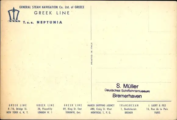 Ak Passagierschiff TSS Neptunia, Greek Line