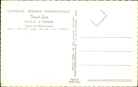 Ak Passagierschiff, Ville d'Oran, CGT, French Line