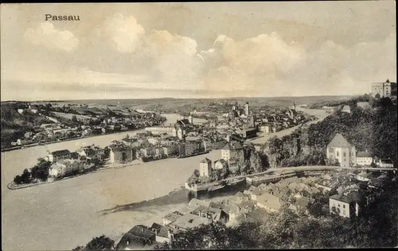 Ak Passau in Niederbayern, Blick von oben, Teilansicht