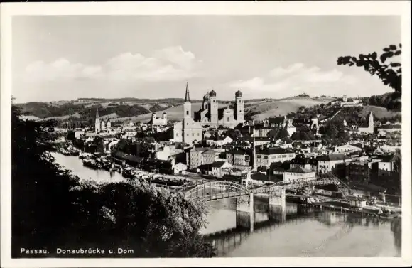Ak Passau in Niederbayern, Donaubrücke, Dom
