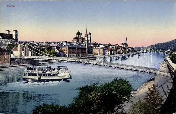 Ak Passau in Niederbayern, Donaubrücke mit Blick auf die Altstadt