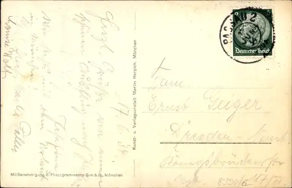 Zustand, siehe Scan, gelaufen, 1934 - ca 14 cm X 9 cm