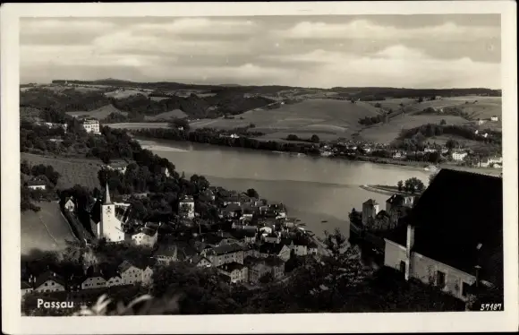 Ak Passau in Niederbayern, Luftaufnahme mit Fluss, Kirche