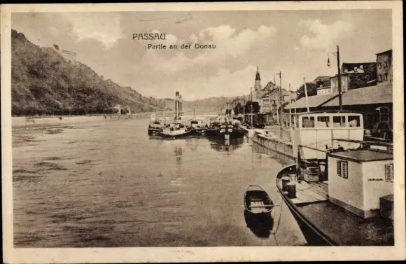 Ak Passau in Niederbayern, Partie an der Donau, Schiffe
