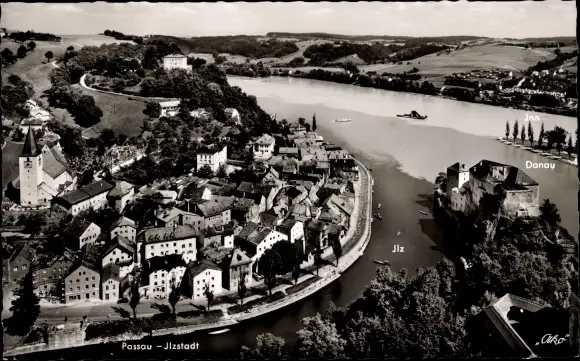 Ak Passau in Niederbayern, Totalansicht, Oberhaus, Niederhaus, Ilzstadt
