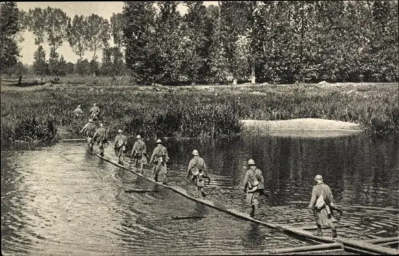 Ak Passerelle legere d'Infanterie, französische Soldaten