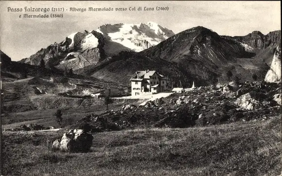 Ak Passo di Falzarego Veneto, Albergo Marmolada verso Col di Lana
