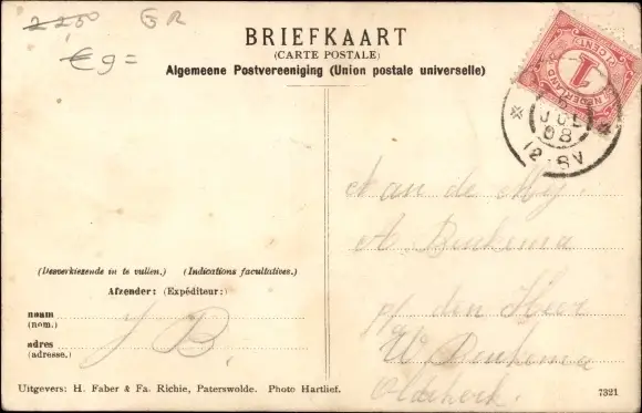 Zustand, siehe Scan, gelaufen, 1908 - ca 14 cm X 9 cm