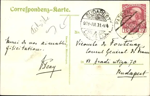 Zustand, siehe Scan, gelaufen, 1931 - ca 14 cm X 9 cm
