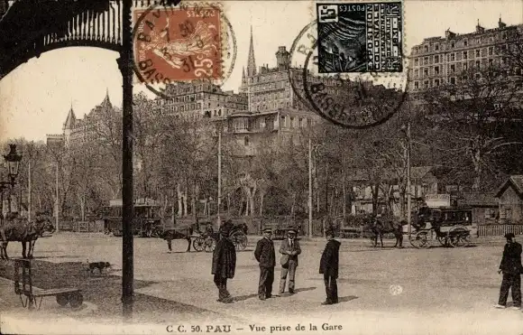 Ak Pau Pyrénées-Atlantiques, vue prise de la Gare