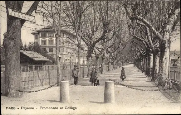 Ak Payerne Kt. Waadt Schweiz, Promenade et College
