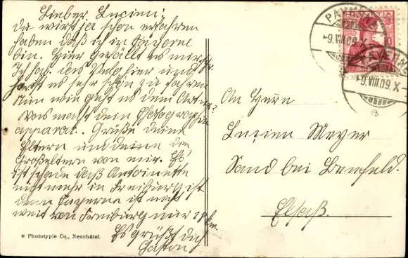 Zustand, siehe Scan, gelaufen, 1909 - ca 14 cm X 9 cm