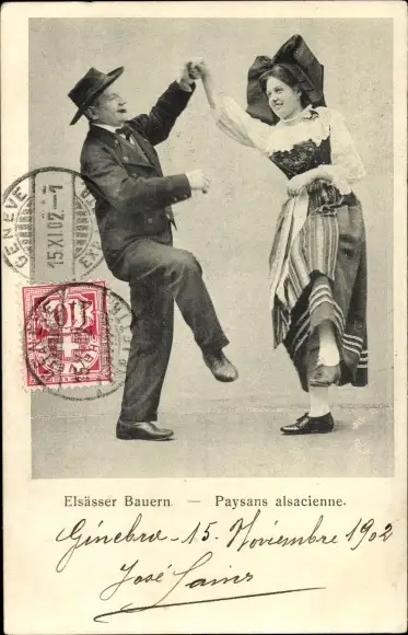 Ak Paysans alsaciens, Elsässer Bauern in Tracht, Tanz