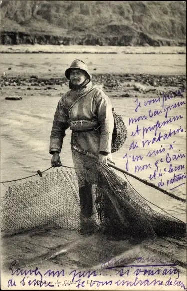 Ak Pecheur des Cotes, Fischer mit Fangnetzen