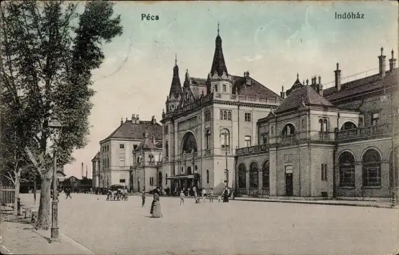 Ak Pécs Fünfkirchen Ungarn, Indohaz, Bahnhof