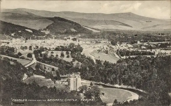 Ak Peebles Schottland, Panorama vom Neidpath Castle