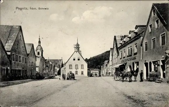 Ak Pegnitz in Oberfranken, Straßenpartie, Gasthof, Kutsche