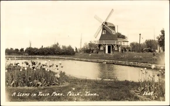 Ak Pella Iowa USA, A Scene in Tulip Park, Windmühle