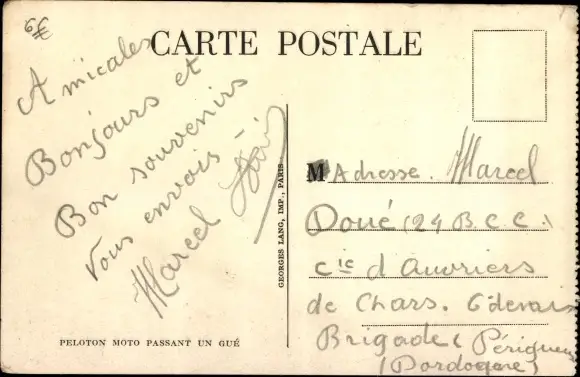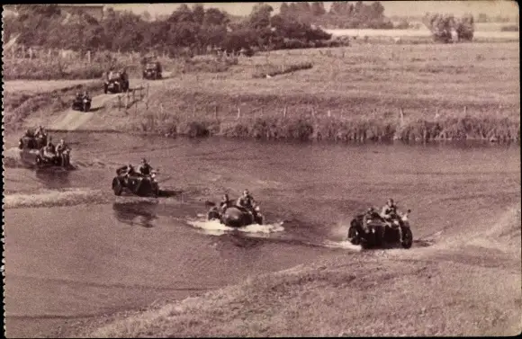Ak Peloton Moto passant un Gué, französische Motorradkompanie