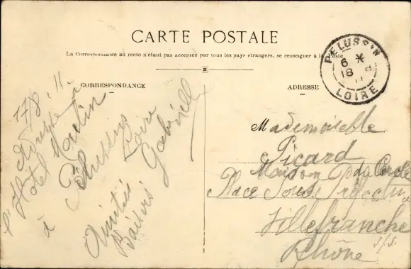 Ak Pélussin Loire, Place de la Mairie, Café Moulin