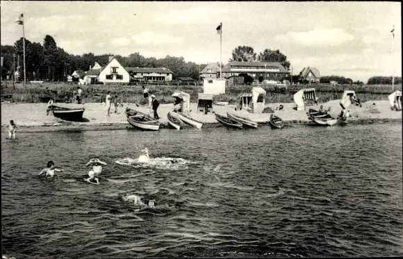 Ak Pelzerhaken Neustadt in Holstein, Badepartie, Strand, Boote